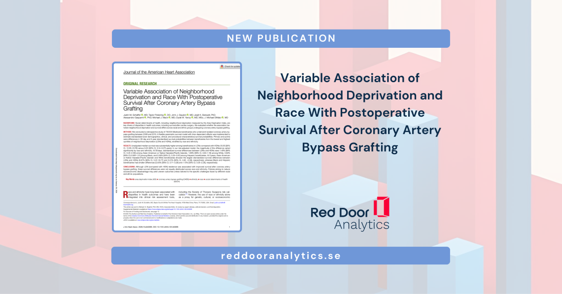 In our latest publication, we used Medicare administrative data to examine the relationship between neighbourhood deprivation and survival outcomes following coronary artery bypass grafting (CABG). The results showed that while patients from less deprived neighbourhoods consistently had better survival rates compared to those from highly deprived areas, this survival advantage varied significantly across racial and ethnic groups.