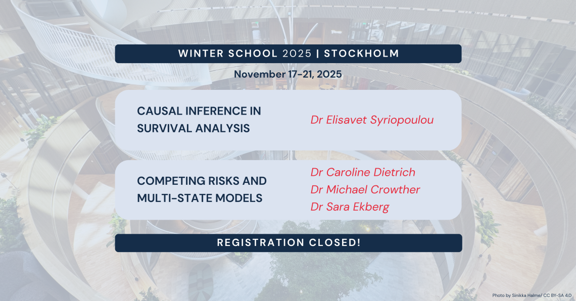 This year’s program focuses on causal inference in survival analysis, as well as competing risks and multi-state models. The Winter School is designed for clinical researchers, statisticians, and professionals working with survival data who are looking to deepen their expertise in survival analysis.
